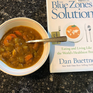 Photography is not my strength so apologies ahead of time. This mushroom soup is actually excellent. It did not come from the recipes in The Blue Zones Solution but I have been inspired by Dan Buettner's research into the Blue Zones ever since I first read his articles for National Geographic.